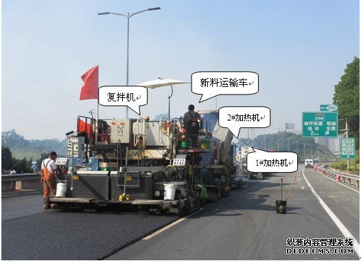 为指导下一步热再生路面的大面积施工;为确定施工时的控制数据;为验证预设的施工组织与施工工艺。广东能达高等级公路维护有限公司在业主及监理的监督下,于2012年12月11日在我公司所监理的广东省开阳高速K3197+317~K3197+800路段进行了沥青路面就地热再生试验路段的施工,该技术既是目前引进的一种先进新型技术,也是广东省高速公路有限公司首次试点的一种施工技术。经原材料抽检以及前后场施工全过程旁站、试拌、试铺、碾压成型、封闭交通到施工后的检测与验收,整个施工过程及监理工作的开展都进行得比较顺利,各项技术指标均能达到规范要求,达到了预期目的。
