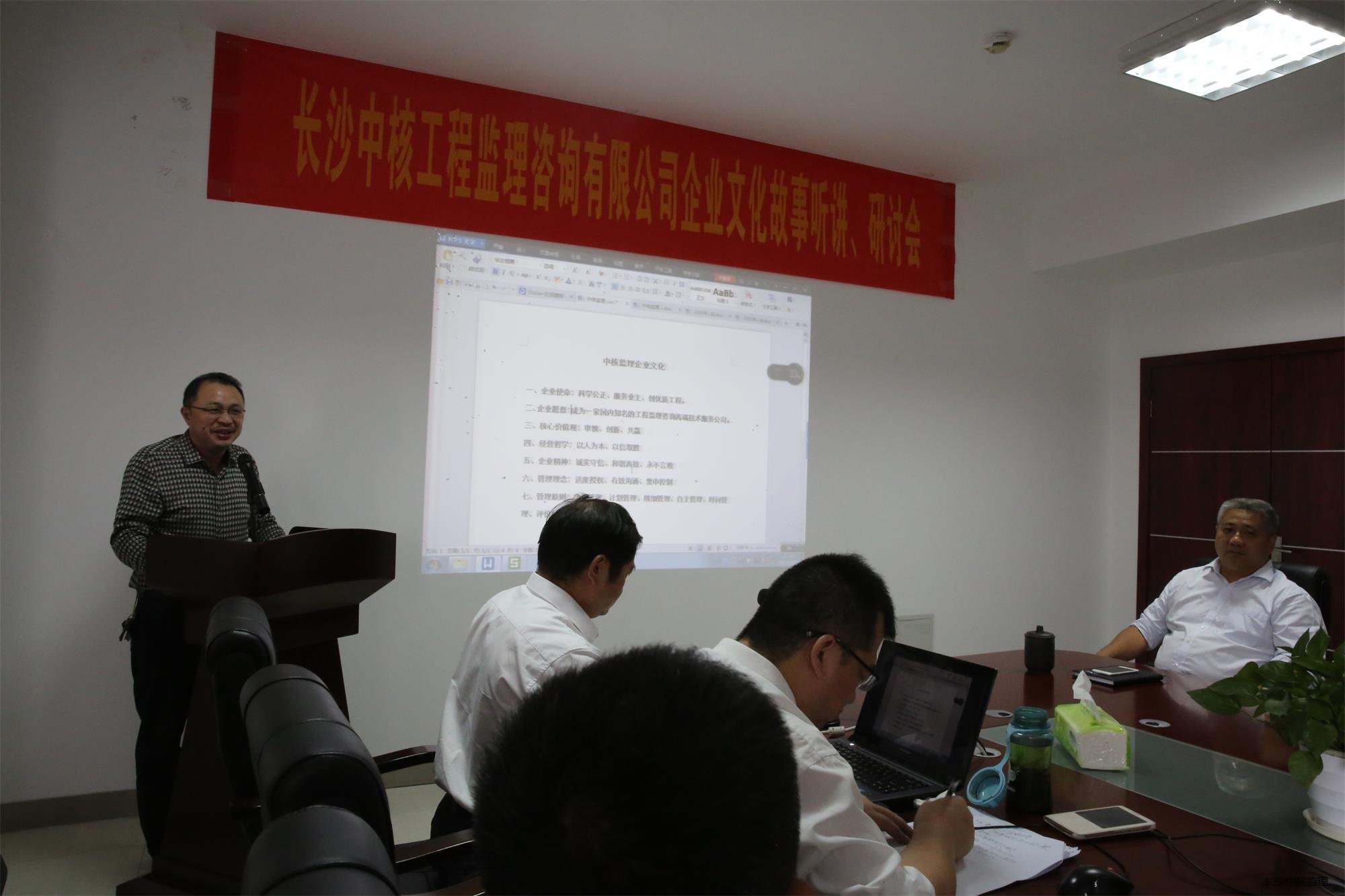 2015年10月22日,公司组织各项目负责人,各项目青年代表以及机关人员召开了由广州万略咨询公司策划的企业文化故事听讲、研讨会,会议由公司书记章再福主持,公司董事长兼总经理梁昕晔在会上做了重要讲话,要求公司全体成员群策群力,为公司的企业文化建设及进一步发展共同努力奋斗;湖南省核工业地质局三0四大队队长蒋文武代表大队党政工做了重要讲话,充分肯定了公司在经营管理企业文化建设等诸多方面所取得的成就,同时与大家分享了自己的成长故事。