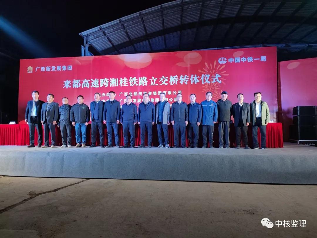 为确保此次桥梁转体顺利完成,针对转体系统安装精度要求高、施工工艺复杂等特点,中核监理来都项目№1总监办提前谋划、精细管理、统筹推进,严格过程控制,利用广西大学设计科研团队线型监控、智能化测试技术等手段,不断优化施工方案,严格落实涉铁项目监管要求,做到铁路施工质量安全“三有”、“九不准、十必须”,全力确保铁路运输安全及施工人员人身安全,优质高效完成转体施工任务。