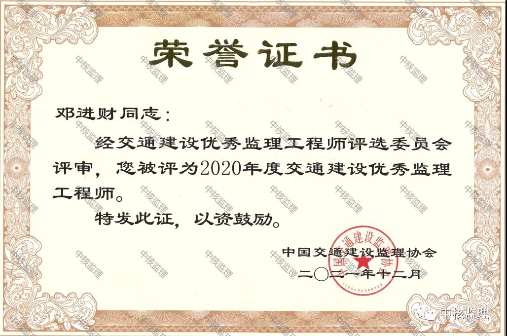 会议对获奖企业和监理工程师进行了表彰,我司荣获“2020年度交通建设优秀监理企业”荣誉称号,我司职工邓进财荣获“2020年度交通建设优秀监理工程师”荣誉称号。
