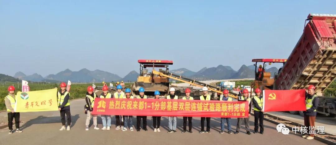 1月10日,我司来都高速1-1分部路面底基层双层连铺试验路段顺利完成。