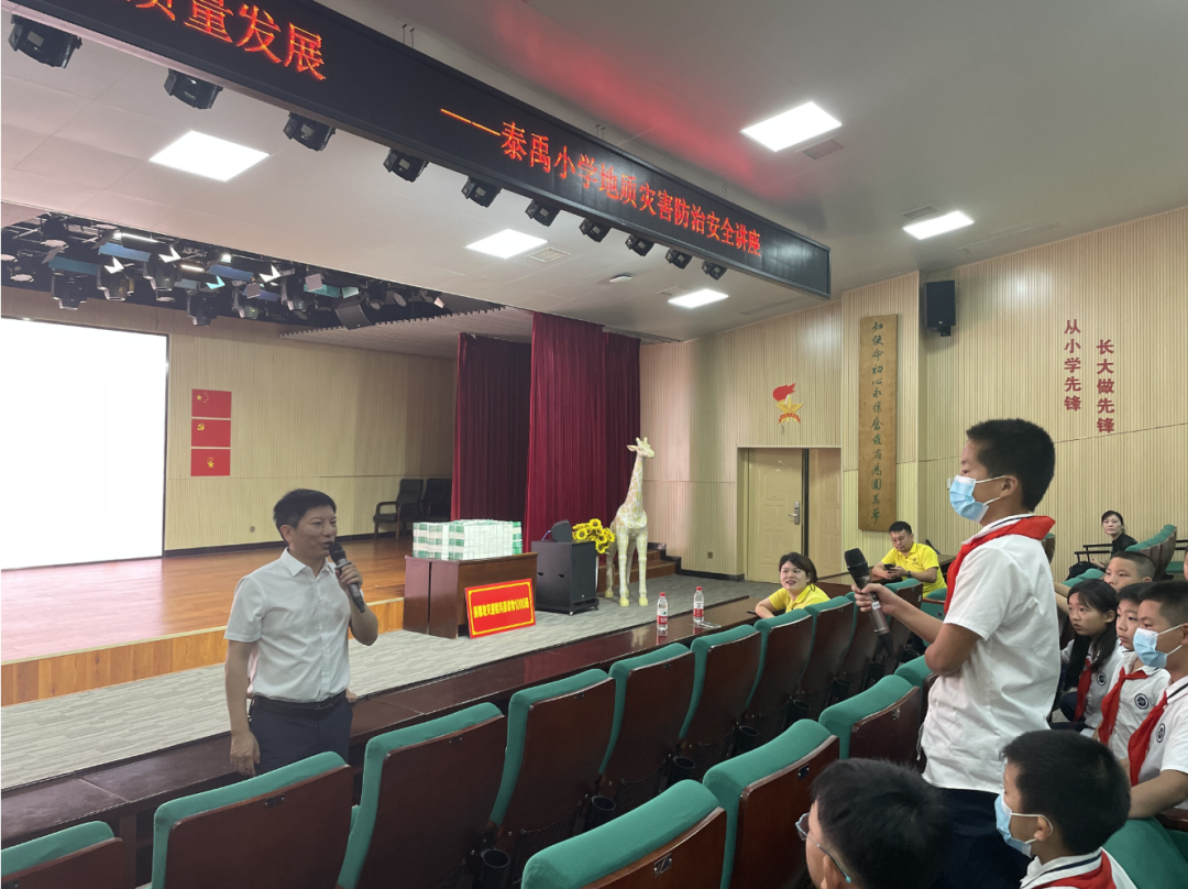 为增强师生的安全意识,培养安全行为习惯,掌握应急避险技能,提高自救互救能力,6月9日下午3点,公司与长沙市雨花区泰禹小学联合举办了“防范灾害风险,护航高质量发展”为主题的地质灾害防治安全讲座。湖南省地质院环境地质室处长、湖南省地质灾害与生态修复学会副秘书长肖光明,公司副董事长兼副总经理梁琭珺、党支部书记文碧、长沙市雨花区泰禹小学彭瑶副校长等出席,学校老师和少先队代表们积极参与。
