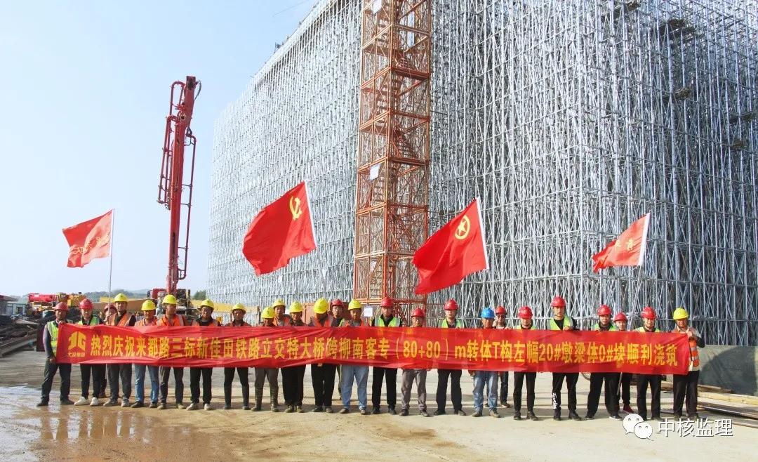 来都高速公路新佳田铁路立交特大桥 跨柳南客专转体T构0#块顺利浇